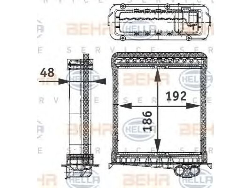 ilgis [mm]: 192 plotis [mm]: 186 gylis [mm]: 48 transporto priemonės įranga: Transporto priemonėms su/be oro kondicionieriumi medžiaga: aliuminis versija: produced by BEHR
