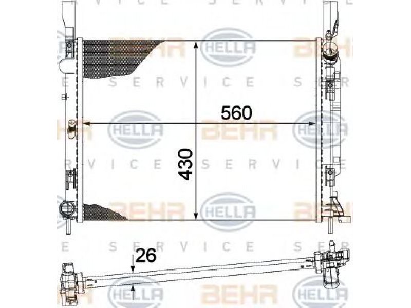 ilgis [mm]: 560 plotis [mm]: 430 gylis [mm]: 26 transporto priemonės įranga: Transporto priemonėms su/be oro kondicionieriumi transmisijos tipas: mechaninė transmisija versija: produced by BEHR |