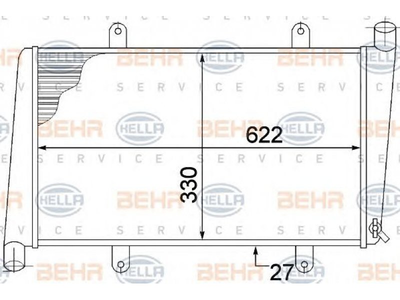 ilgis [mm]: 622 plotis [mm]: 330 gylis [mm]: 27 transporto priemonės įranga: Transporto priemonėms su/be oro kondicionieriumi transmisijos tipas: mechaninė transmisija versija: produced by BEHR |