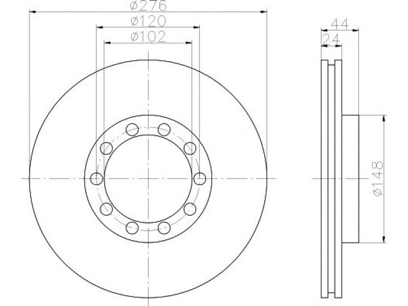 stabdžių disko tipas: vidinis ventiliavimas skersmuo [mm]: 276 stabdžių disko storis [mm]: 24 minimalus storis [mm]: 22 aukštis [mm]: 44 angų išdėstymas / skaičius: 10/10 angos apskritimo skersmuo [mm]: 120 centravimo skersmuo [mm]: 102 svoris [kg]: 6,76 papildomas gaminys / papildoma informacija 2: be rato tvirtinimo smeigių paviršius: padengta |