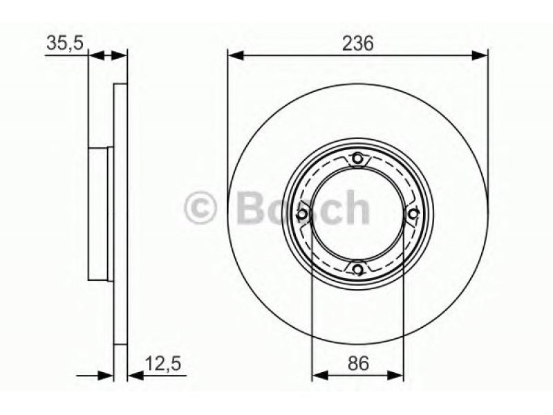 skersmuo [mm]: 236 stabdžių disko storis [mm]: 12,5 minimalus storis [mm]: 9,7 aukštis [mm]: 35,5 stabdžių disko tipas: visiškai rato stebulės skersmuo [mm]: 86 angų skaičius: 4 svoris [kg]: 3,65 |