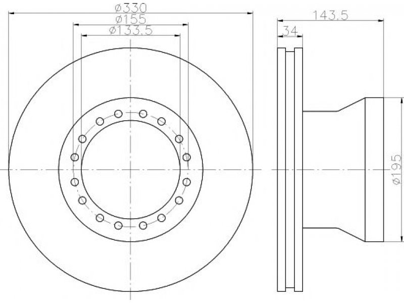 stabdžių disko tipas: vidinis ventiliavimas skersmuo [mm]: 330 stabdžių disko storis [mm]: 34 minimalus storis [mm]: 28 aukštis [mm]: 143,5 angų išdėstymas / skaičius: 16/16 angos apskritimo skersmuo [mm]: 155 centravimo skersmuo [mm]: 133,5 svoris [kg]: 19,21 papildomas gaminys / papildoma informacija 2: be rato tvirtinimo smeigių techninės informacijos numeris: 98200 1425 0 1 montavimo vieta: priekinė ašis |