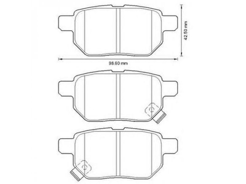 montavimo vieta: galinė ašis storis [mm]: 14,4 ilgis [mm]: 98,6 aukštis [mm]: 42,5 stabdžių sistema: AKEBONO WVA numeris: 25016;25017 |