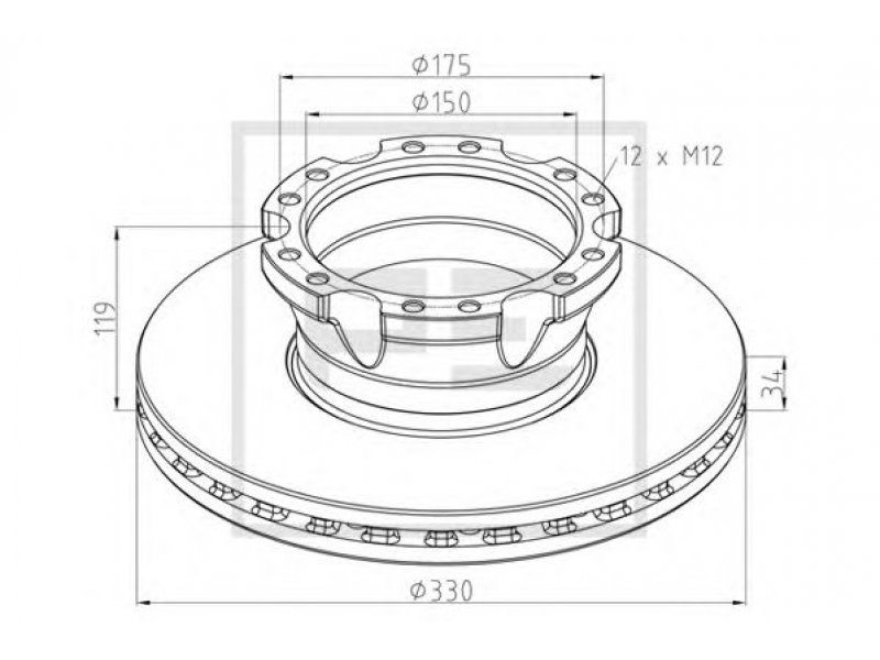 išorinis skersmuo [mm]: 330 storis [mm]: 34 minimalus storis [mm]: 28 aukštis [mm]: 119 stebulės angos Ø [mm]: 150 angos apskritimo skersmuo [mm]: 175 angų skaičius: 12 sriegio dydis: M12 svoris [kg]: 16,8 papildomas gaminys / papildoma informacija 2: su ABS jutiklio žiedu montavimo vieta: dešinė bloko atskyrimas: ašies versija: AAS8.22 transporto priemonės apdailos lygis: 1301/1478517 būtinas kiekis: 2 |