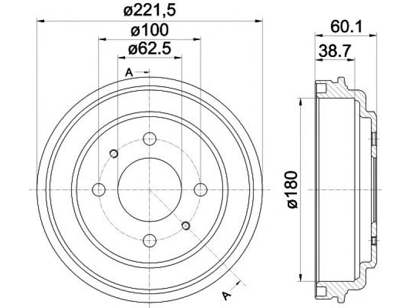 būgno skersmuo: 180 vidinis stabdžių būgno aukštis [mm]: 38,7 išorinis stabdžių būgno skersmuo [mm]: 221,5 bendras stabdžių būgno aukštis [mm]: 60,1 angų išdėstymas / skaičius: 04/06 angos apskritimo skersmuo [mm]: 100 maks. būgno nusidėv. matavimas [mm]: 182 centravimo skersmuo [mm]: 62,5 svoris [kg]: 6,3 papildomas gaminys / papildoma informacija 2: be rato tvirtinimo smeigių |
