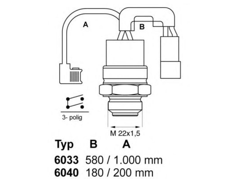 įjungimo taškas [°C]: 92 išjungimo taškas [°C]: 85 polių skaičius: 3 kabelio ilgis [mm]: 1000 papildomas gaminys / papildoma informacija: su sandarikliu jungties sriegis: M 22 x 1,5 mm |