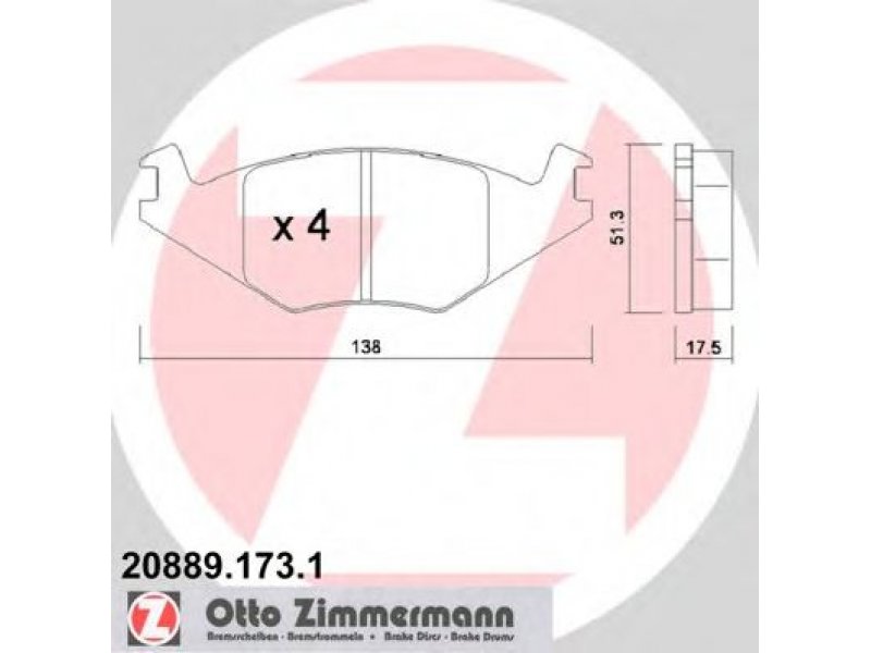 Stabdžių trinkelių rinkinys, diskinis stabdys 20889.173.1 ZIMMERMANN |