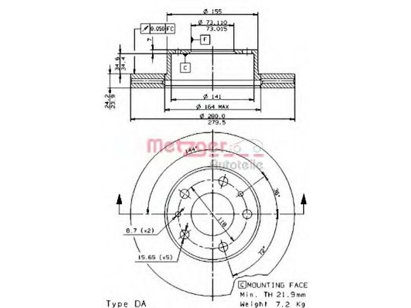 Stabdžių diskas 24535 E METZGER |