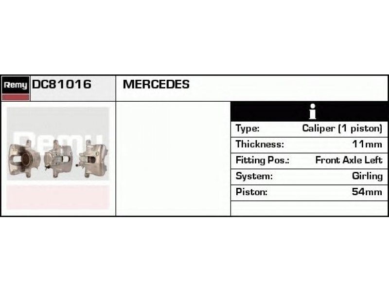 montavimo vieta: priekinė ašis, kairė stabdžių sistema: Girling stabdžių apkabos tipas: apkaba (1 stūmoklis) stūmoklio skersmuo [mm]: 54 stabdžių disko storis [mm]: 11 |