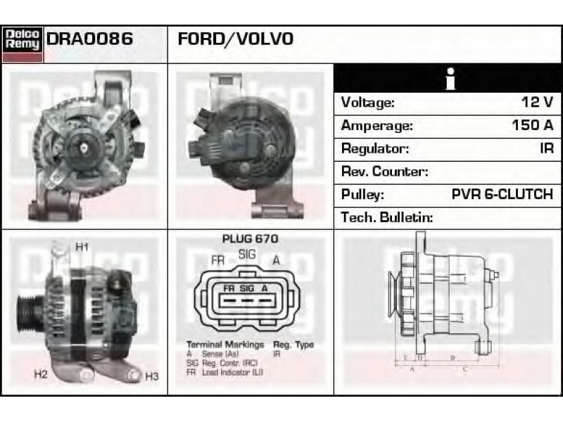 Kintamosios srovės generatorius DRA0086 DELCO REMY