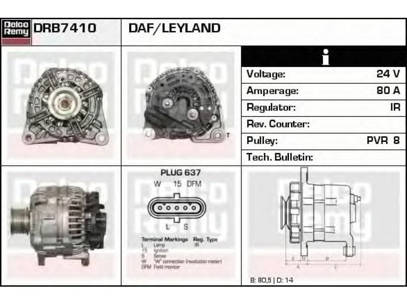 Kintamosios srovės generatorius DRB7410 DELCO REMY |
