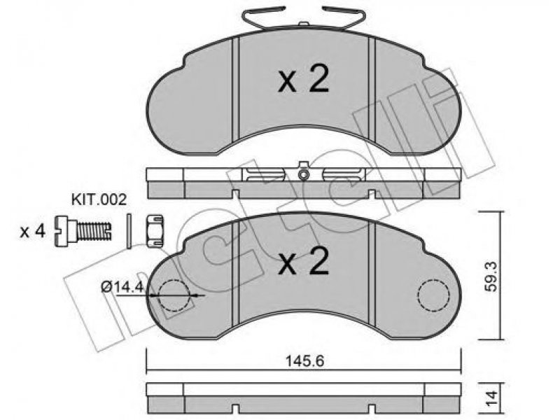 stabdžių sistema: Bendix - Bosch plotis [mm]: 145,6 aukštis [mm]: 59,3 storis [mm]: 14 susidėvėjimo įspėjimo kontaktas: neparengta susidėvėjimo indikatoriui |
