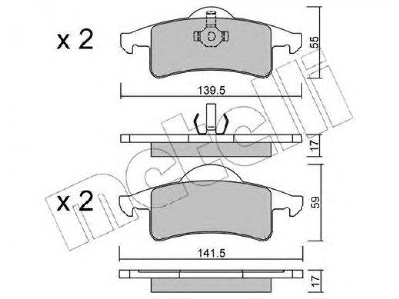 stabdžių sistema: Ate - Teves 1 plotis [mm]: 139,5 aukštis 1 [mm]: 55 storis / stirpumas 1 [mm]: 17 2 plotis [mm]: 141,5 aukštis 2 [mm]: 59 storis / stirpumas 2 [mm]: 17 susidėvėjimo įspėjimo kontaktas: neparengta susidėvėjimo indikatoriui patikros žymė: ECE R90 APPROVED |