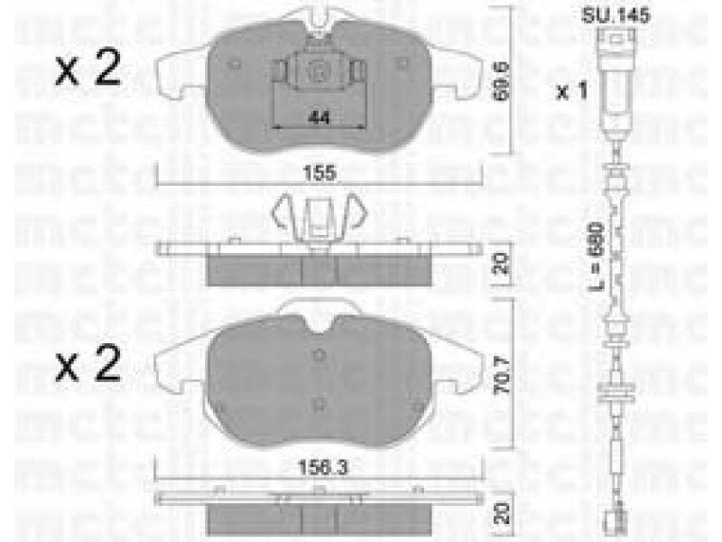 stabdžių sistema: Ate - Teves 1 plotis [mm]: 155 aukštis 1 [mm]: 69,6 storis / stirpumas 1 [mm]: 20 2 plotis [mm]: 156,3 aukštis 2 [mm]: 70,7 storis / stirpumas 2 [mm]: 20 susidėvėjimo įspėjimo kontaktas: įsk. įspėjimo apie nusidėvėjimą kontaktą patikros žymė: ECE R90 APPROVED |