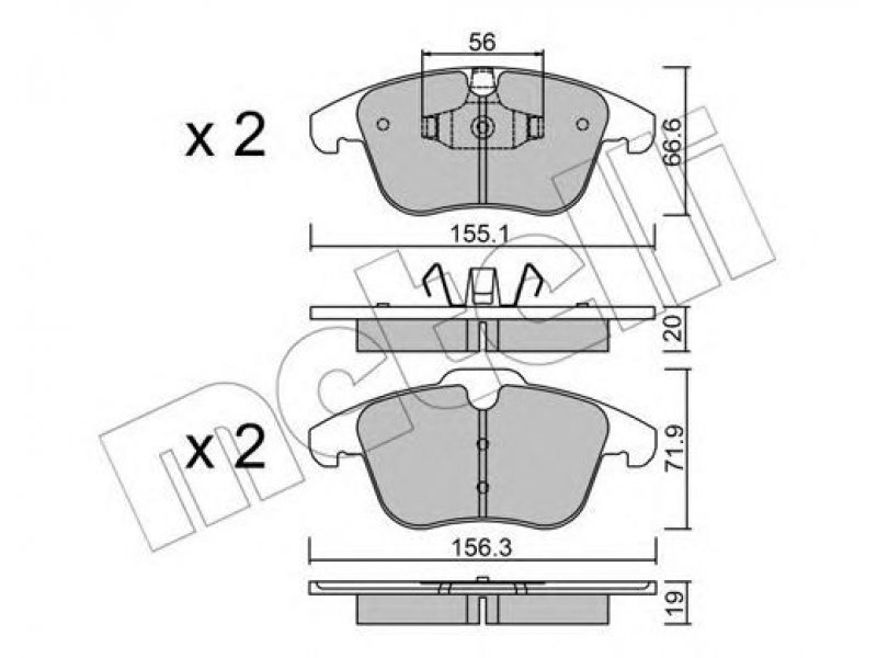 stabdžių sistema: Ate - Teves 1 plotis [mm]: 155,1 aukštis 1 [mm]: 66,6 storis / stirpumas 1 [mm]: 20 2 plotis [mm]: 156,3 aukštis 2 [mm]: 71,9 storis / stirpumas 2 [mm]: 19 susidėvėjimo įspėjimo kontaktas: neparengta susidėvėjimo indikatoriui patikros žymė: ECE R90 APPROVED |