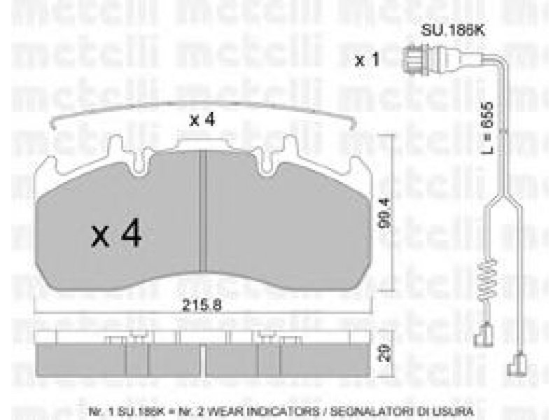 stabdžių sistema: Meritor plotis [mm]: 215,8 aukštis [mm]: 99,4 storis [mm]: 29 patikros žymė: ECE R90 APPROVED susidėvėjimo įspėjimo kontaktas: įsk. įspėjimo apie nusidėvėjimą kontaktą |