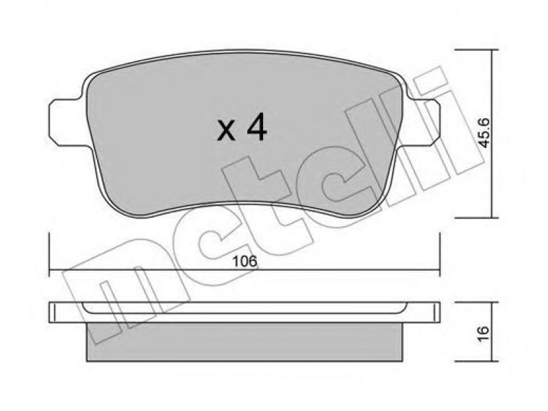 stabdžių sistema: Lucas - Girling plotis [mm]: 106 aukštis [mm]: 45,6 storis [mm]: 16 susidėvėjimo įspėjimo kontaktas: neparengta susidėvėjimo indikatoriui patikros žymė: ECE R90 APPROVED |