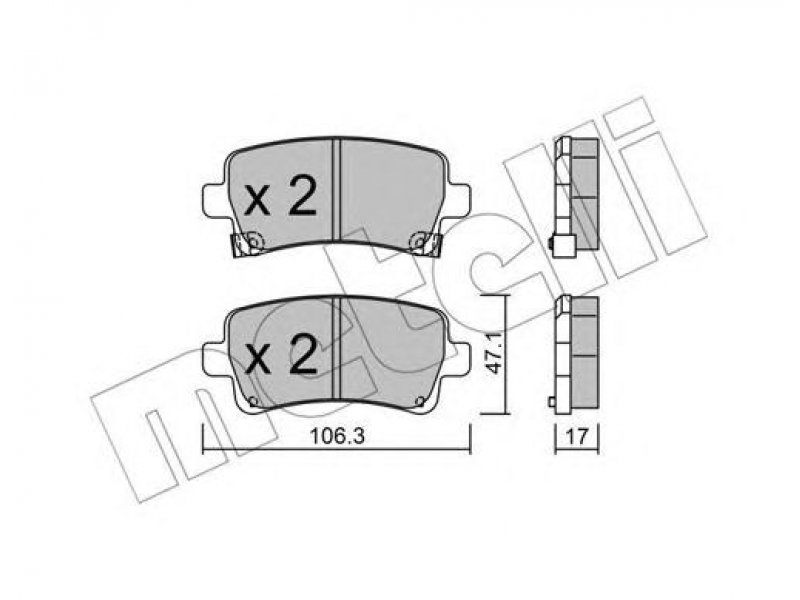 stabdžių sistema: Sumitomo plotis [mm]: 106,3 aukštis [mm]: 47,1 storis [mm]: 17 susidėvėjimo įspėjimo kontaktas: su akustiniu nusidėvėjimo įspėjimu patikros žymė: ECE R90 APPROVED montavimo vieta: galinė ašis