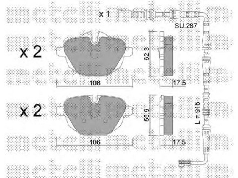 montavimo vieta: galinė ašis 1 plotis [mm]: 106 aukštis 1 [mm]: 62,3 storis / stirpumas 1 [mm]: 17,5 2 plotis [mm]: 106 aukštis 2 [mm]: 55,9 storis / stirpumas 2 [mm]: 17,5 susidėvėjimo įspėjimo kontaktas: parengtam susidėvėjimo indikatoriui patikros žymė: ECE R90 APPROVED stabdžių sistema: GIRLING |
