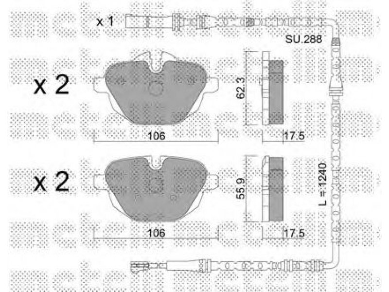 montavimo vieta: galinė ašis 1 plotis [mm]: 106 aukštis 1 [mm]: 62,3 storis / stirpumas 1 [mm]: 17,5 2 plotis [mm]: 106 aukštis 2 [mm]: 55,9 storis / stirpumas 2 [mm]: 17,5 susidėvėjimo įspėjimo kontaktas: parengtam susidėvėjimo indikatoriui patikros žymė: ECE R90 APPROVED stabdžių sistema: GIRLING |