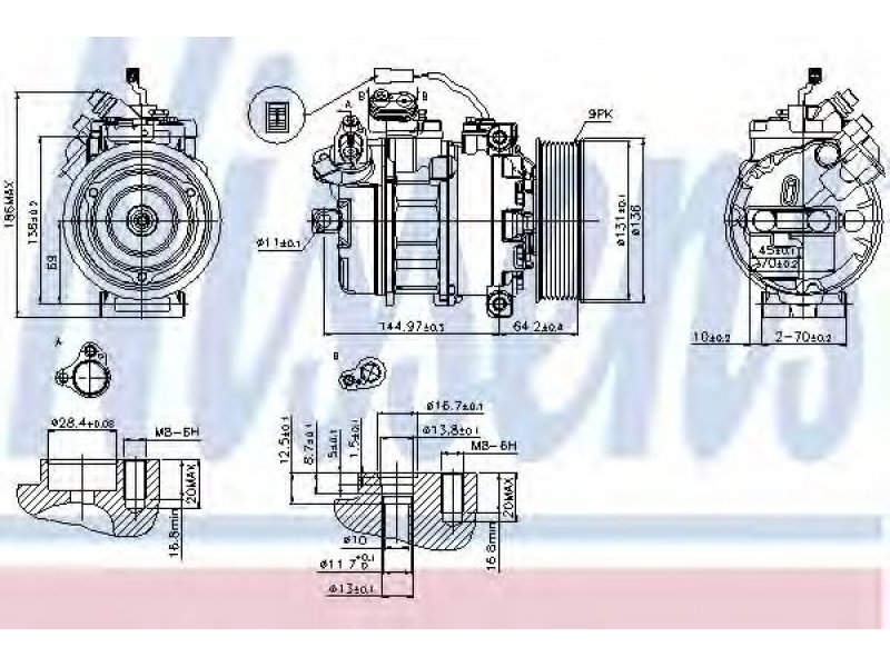 89371-NISSENS Kompresorius oro kondicionieriaus MERCEDES-BENZ 1998-2017 12 CITARO CONECTO INTEGRO TRAVEGO TOURISMO INTOURO