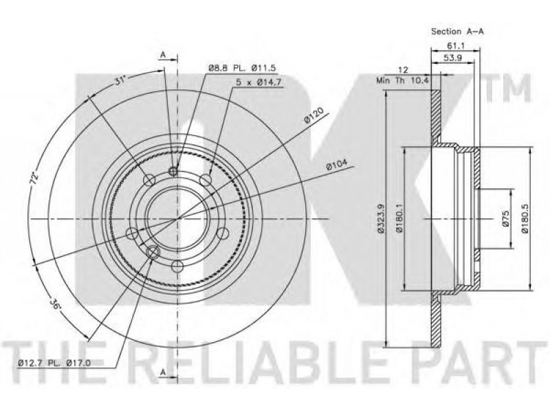 skersmuo [mm]: 324 aukštis [mm]: 61,1 svoris [kg]: 6,7 stabdžių disko tipas: visiškai stabdžių disko storis [mm]: 12 minimalus storis [mm]: 10,4 centravimo skersmuo [mm]: 75 prekės numeriui: 89011668 Bolt žiedų angų skaičius: 5 montavimo vieta: galinė ašis