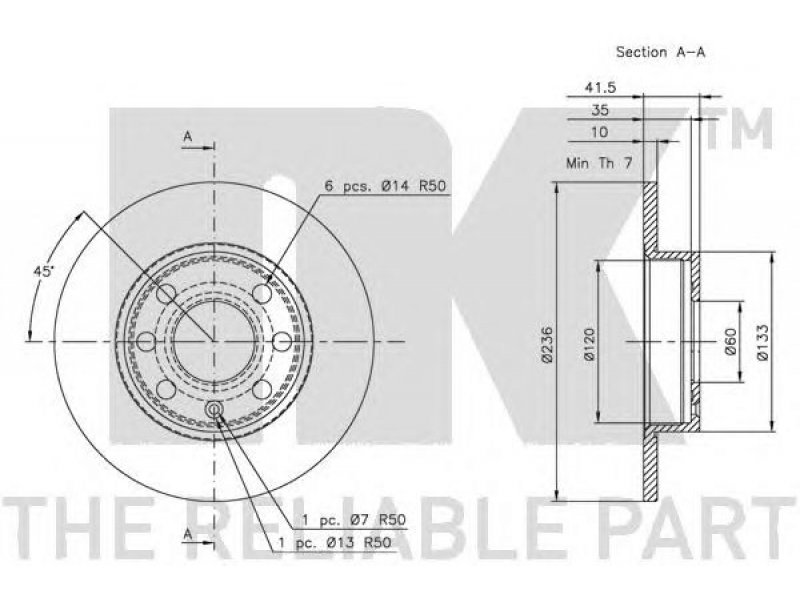 skersmuo [mm]: 236 aukštis [mm]: 41,5 svoris [kg]: 3,11 stabdžių disko tipas: visiškai stabdžių disko storis [mm]: 10 minimalus storis [mm]: 7 centravimo skersmuo [mm]: 60 žiedų angų skaičius: 4 montavimo vieta: priekinė ašis