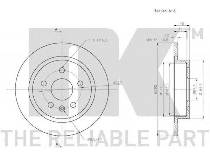 skersmuo [mm]: 292 aukštis [mm]: 48 svoris [kg]: 5,52 stabdžių disko tipas: visiškai stabdžių disko storis [mm]: 12 minimalus storis [mm]: 10,5 centravimo skersmuo [mm]: 67,3 žiedų angų skaičius: 5 montavimo vieta: galinė ašis