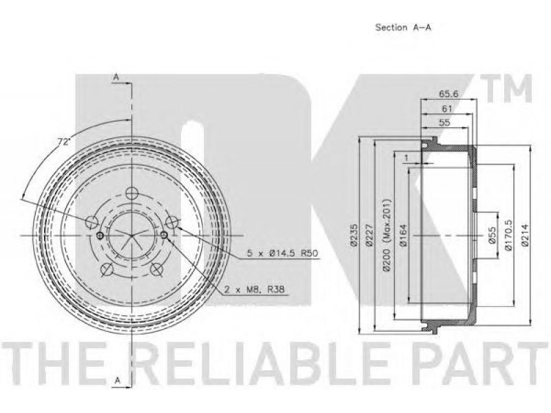 būgno skersmuo: 200.0 vidinis stabdžių būgno aukštis [mm]: 55 bendras stabdžių būgno aukštis [mm]: 65,5 žiedų angų skaičius: 5 montavimo vieta: galinė ašis