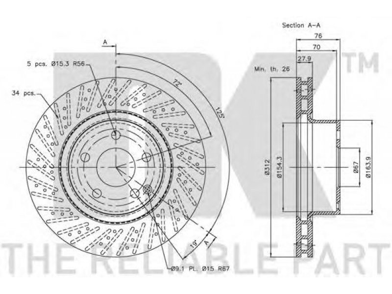 skersmuo [mm]: 312 aukštis [mm]: 76 svoris [kg]: 8,55 stabdžių disko tipas: ventiliuojama stabdžių disko storis [mm]: 28 minimalus storis [mm]: 26 centravimo skersmuo [mm]: 67 paviršius: padengta žiedų angų skaičius: 5 |