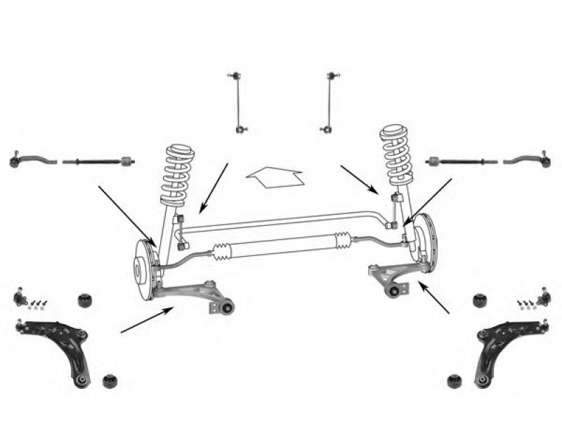 montavimo vieta: priekinė ašis