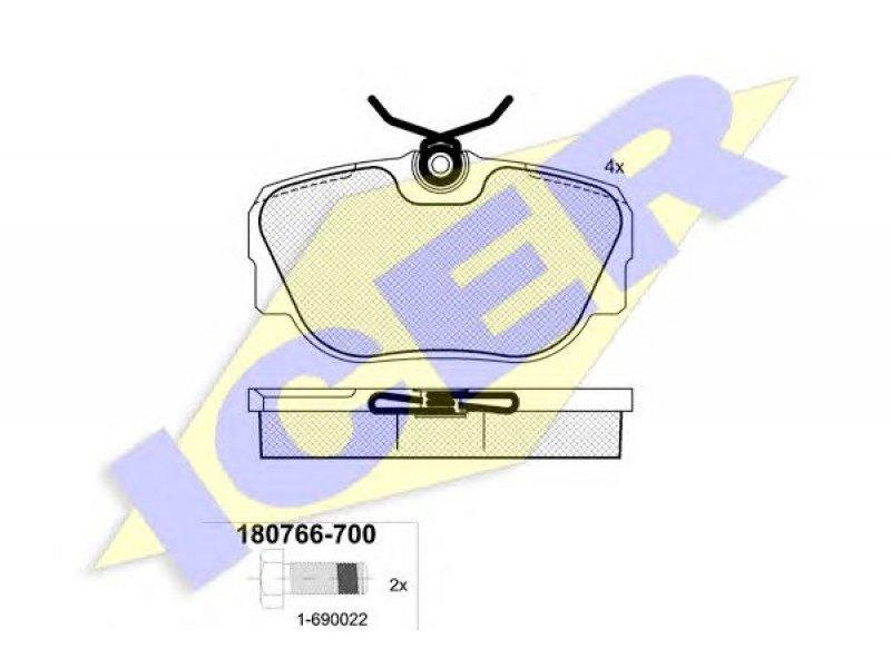 Stabdžių trinkelių rinkinys, diskinis stabdys 180766-700 ICER |