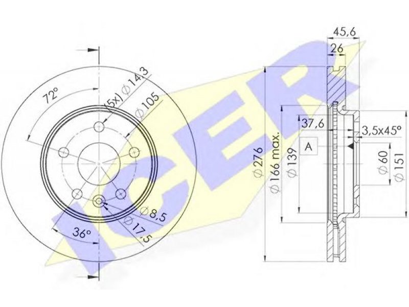 stabdžių tipas: diskinis stabdys aukštis [mm]: 45,6 storis [mm]: 26 svoris [kg]: 14.450 ašies versija: Front techninės informacijos numeris: 78BD1559-2 angos apskritimo skersmuo [mm]: 105 rato stebulės skersmuo [mm]: 60 skersmuo [mm]: 276 angų išdėstymas / skaičius: 5 minimalus storis [mm]: 24 išvėdintas: montavimo vieta: priekinė ašis