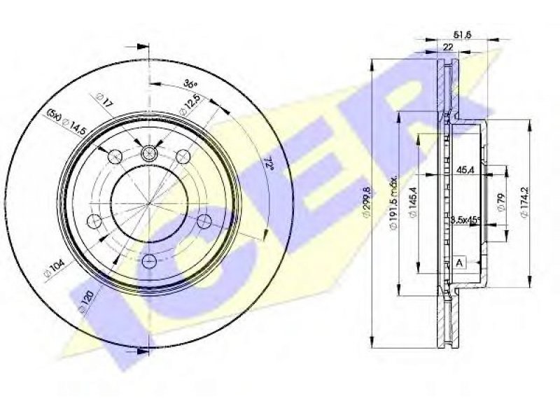 stabdžių tipas: diskinis stabdys aukštis [mm]: 51,5 storis [mm]: 22 svoris [kg]: 13.760 ašies versija: Front techninės informacijos numeris: 78BD4539-2 rato stebulės skersmuo [mm]: 79 skersmuo [mm]: 300 angų išdėstymas / skaičius: 5 minimalus storis [mm]: 20,4 išvėdintas: montavimo vieta: priekinė ašis