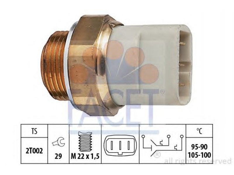 Temperatūros jungiklis, radiatoriaus ventiliatorius 7.5697 FACET |