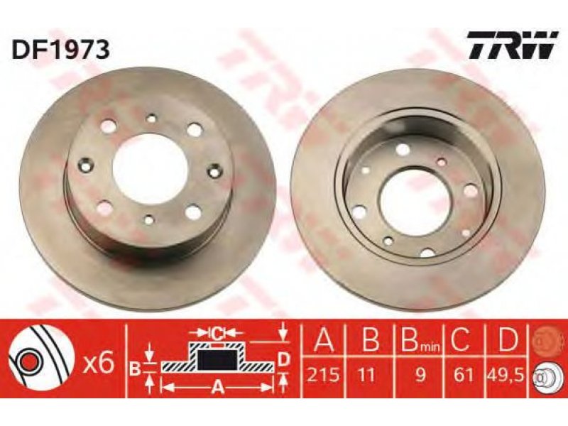 stabdžių disko tipas: visiškai skersmuo [mm]: 215 stabdžių disko storis [mm]: 11 minimalus storis [mm]: 9 centravimo skersmuo [mm]: 61 aukštis [mm]: 49,5 angų skaičius: 4 sriegio dydis: 12,6 angos apskritimo skersmuo [mm]: 100 montavimo vieta: priekinė ašis