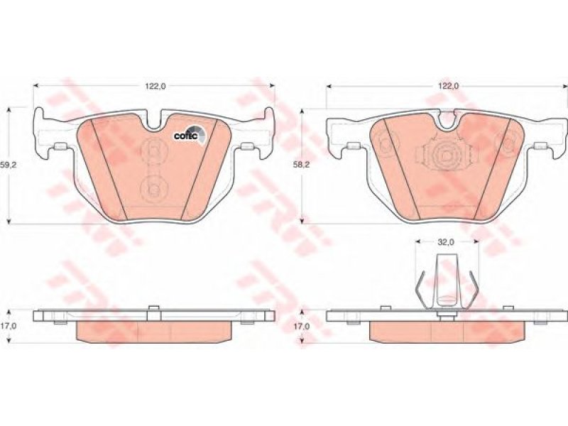 gamintojo apribojimas: ATE ilgis [mm]: 122 storis [mm]: 17 susidėvėjimo įspėjimo kontaktas: parengtam susidėvėjimo indikatoriui patikros žymė: E9 90R - 01708/021 aukštis 1 [mm]: 59,2 aukštis 2 [mm]: 58,2 montavimo vieta: galinė ašis