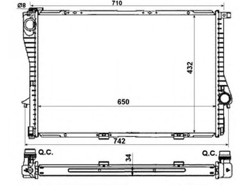 plotis [mm]: 432 aukštis [mm]: 650 storis [mm]: 34 OE numeriui: 1436061 transporto priemonės įranga: Transporto priemonėms be oro kondicionavimo sistemos transmisijos tipas: mechaninė / pasirenkama automatinė transmisija |