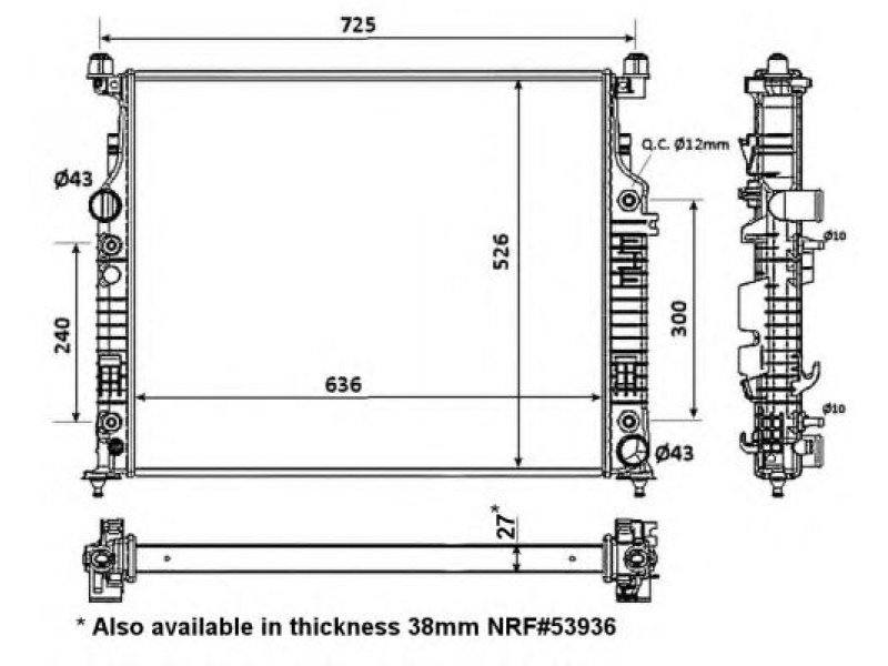 šildymas / aušinimas: Transporto priemonėms su kombinuotu radiatoriumi/tepalo auši plotis [mm]: 526 aukštis [mm]: 636 storis [mm]: 27 |