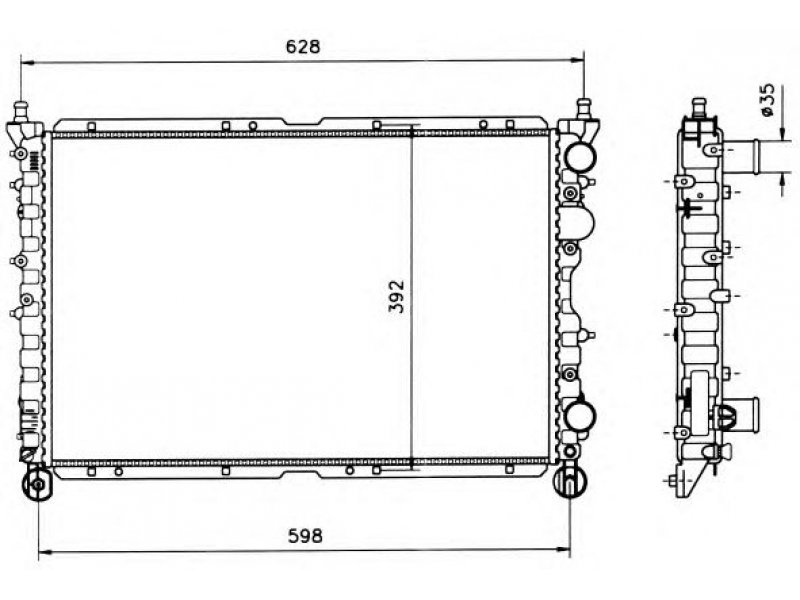 plotis [mm]: 377 aukštis [mm]: 558 storis [mm]: 34 OE numeriui: 60623447 transporto priemonės įranga: Transporto priemonėms be oro kondicionavimo sistemos transmisijos tipas: mechaninė transmisija |