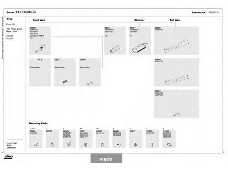 nuorodos numeris: 233128200030 išmetimo emisijos norma: euro 3 (D3) kairės / dešinės pusės eismas: Dešinės pusės eismui tarpuratis [mm]: 4185 Išmetimo sistema: su išmetimo vamzdžiu į galą |