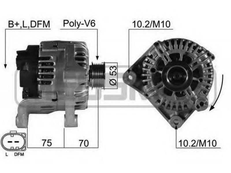 prekės numeriui: 210506 kintamosios srovės generatoriaus įkrovimo srovė [A]: 150 įtampa [V]: 14