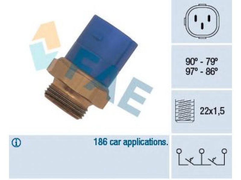 pradinė temperatūra [°C]: 90 uždarymo temperatūra [°C]: 79 temperatūros riba nuo [°C]: 97 temperatūros riba iki [°C]: 86 jungčių skaičius: 3 transporto priemonės įranga: Transporto priemonėms su oro kondicionavimo sistema.