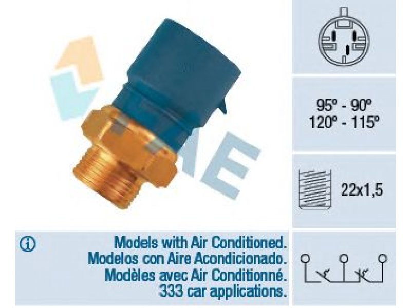 Temperatūros jungiklis, radiatoriaus ventiliatorius 38235 FAE