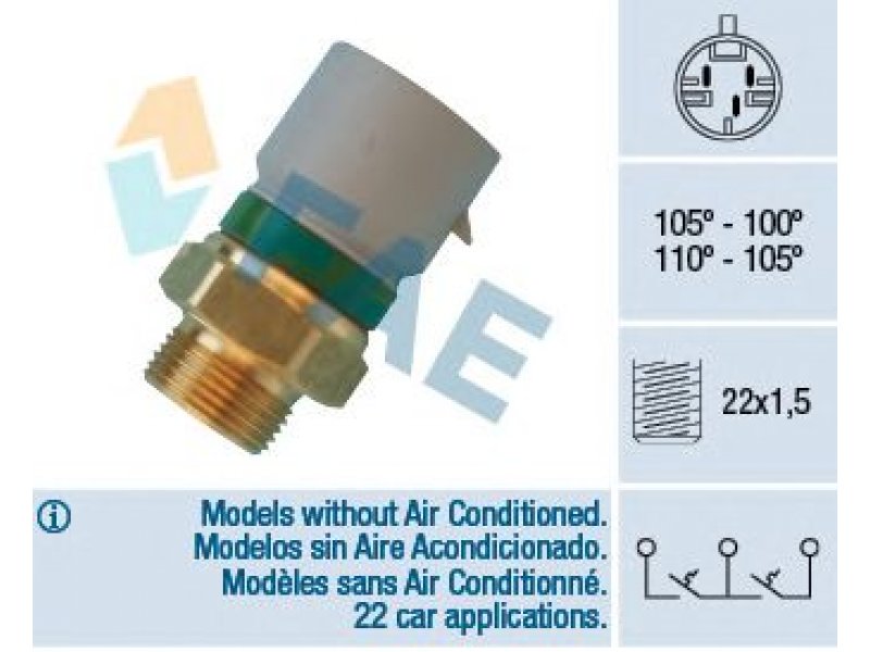 Temperatūros jungiklis, radiatoriaus ventiliatorius 38350 FAE