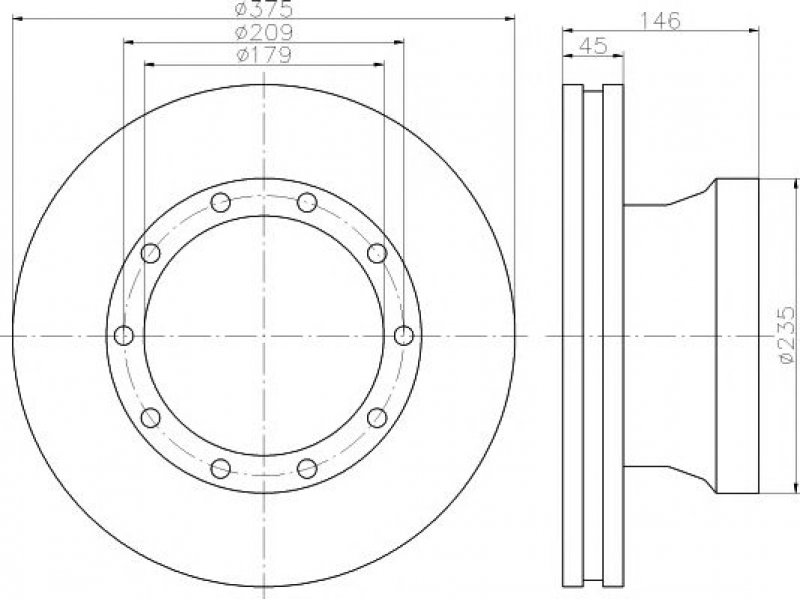 stabdžių disko tipas: vidinis ventiliavimas skersmuo [mm]: 375 stabdžių disko storis [mm]: 45 minimalus storis [mm]: 38 aukštis [mm]: 146 angų išdėstymas / skaičius: 10/10 angos apskritimo skersmuo [mm]: 209 centravimo skersmuo [mm]: 179 svoris [kg]: 28,55 papildomas gaminys / papildoma informacija 2: be rato tvirtinimo smeigių montavimo vieta: galinė ašis |