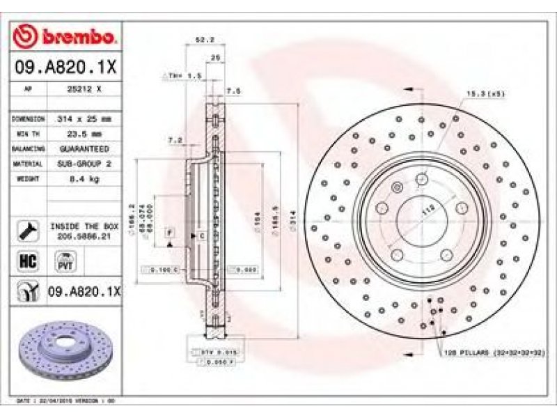 prekės numeriui: 25212 X stabdžių disko tipas: perforuota / ventiliuojama skersmuo [mm]: 314 stabdžių disko storis [mm]: 25 minimalus storis [mm]: 23,5 aukštis [mm]: 52,2 užbaigimas: pastiprinta anglis centravimo skersmuo [mm]: 68 angų skaičius: 5 užveržimo sukimo momentas [Nm]: 120 paviršius: padengta papildomas gaminys / papildoma informacija 2: su varžtais montavimo vieta: priekinė ašis OE numeriui: 1LT,1LY