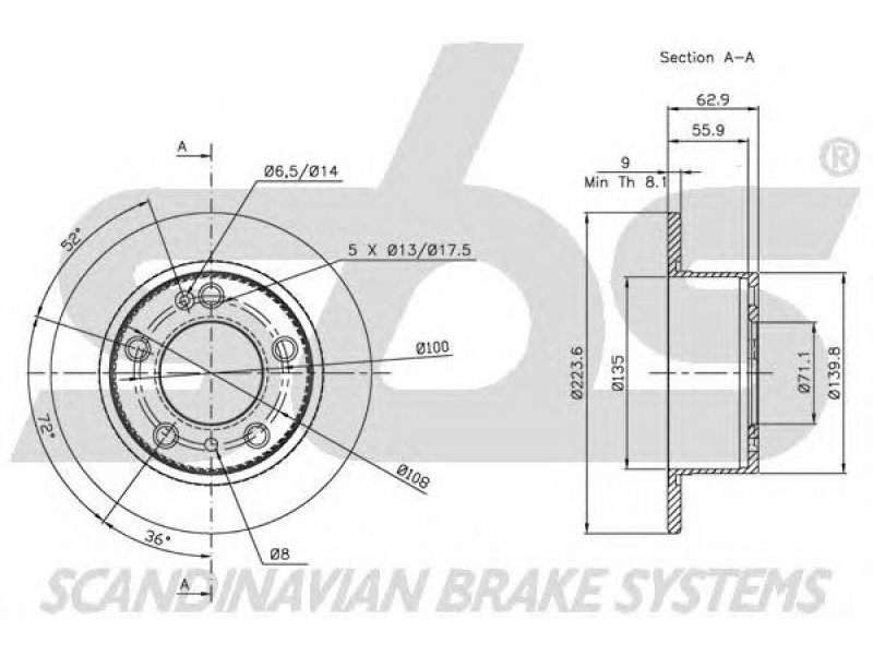 skersmuo [mm]: 224 aukštis [mm]: 63 svoris [kg]: 2,6 stabdžių disko tipas: visiškai stabdžių disko storis [mm]: 9 minimalus storis [mm]: 8,1 centravimo skersmuo [mm]: 71 žiedų angų skaičius: 5 |