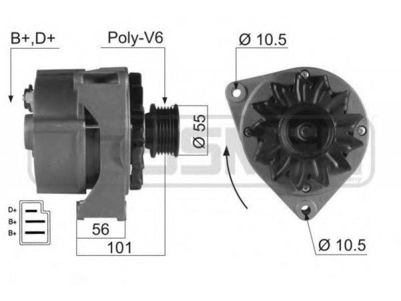 prekės numeriui: 210032 įtampa [V]: 14 kintamosios srovės generatoriaus įkrovimo srovė [A]: 55