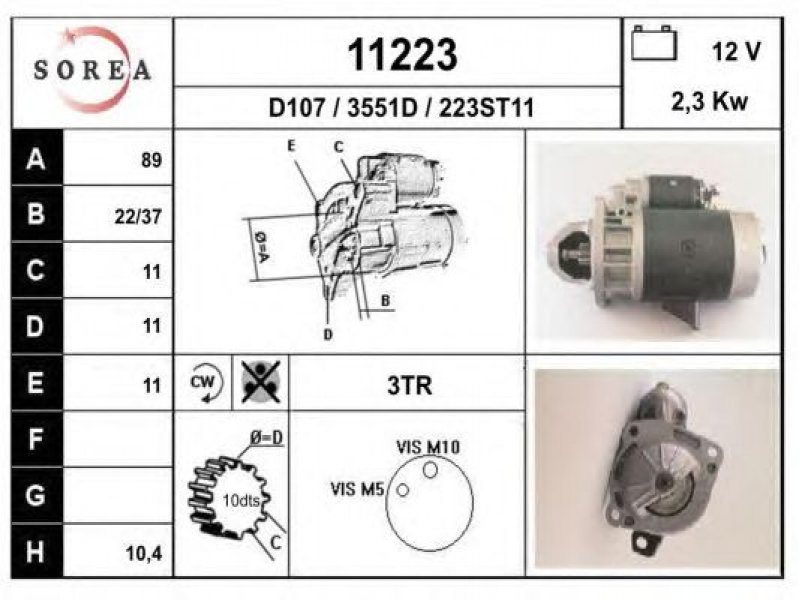 įtampa [V]: 12 nustatyta galia [kW]: 2,3 sukimo kryptis: rotacija pagal laikrodžio rodyklę krumplių skaičius: 10 techninės informacijos numeris: C045 centravimo skersmuo [mm]: 89 montavimo angų skaičius: 3 |